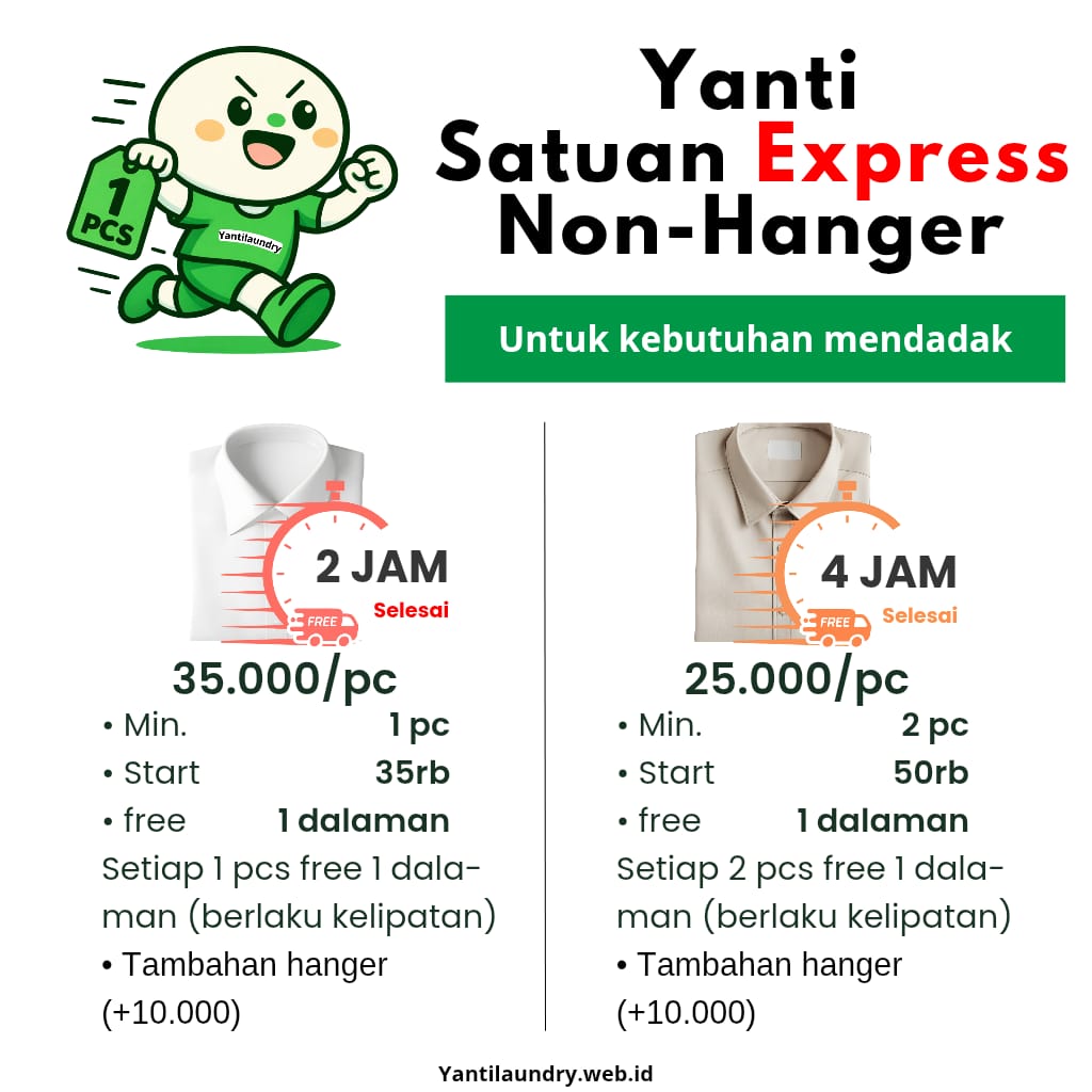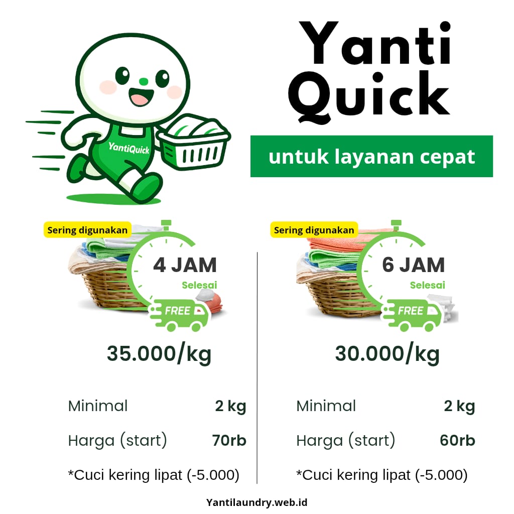 Karena itu, Yanti Laundry menyediakan pilihan layanan berdasarkan kecepatan.